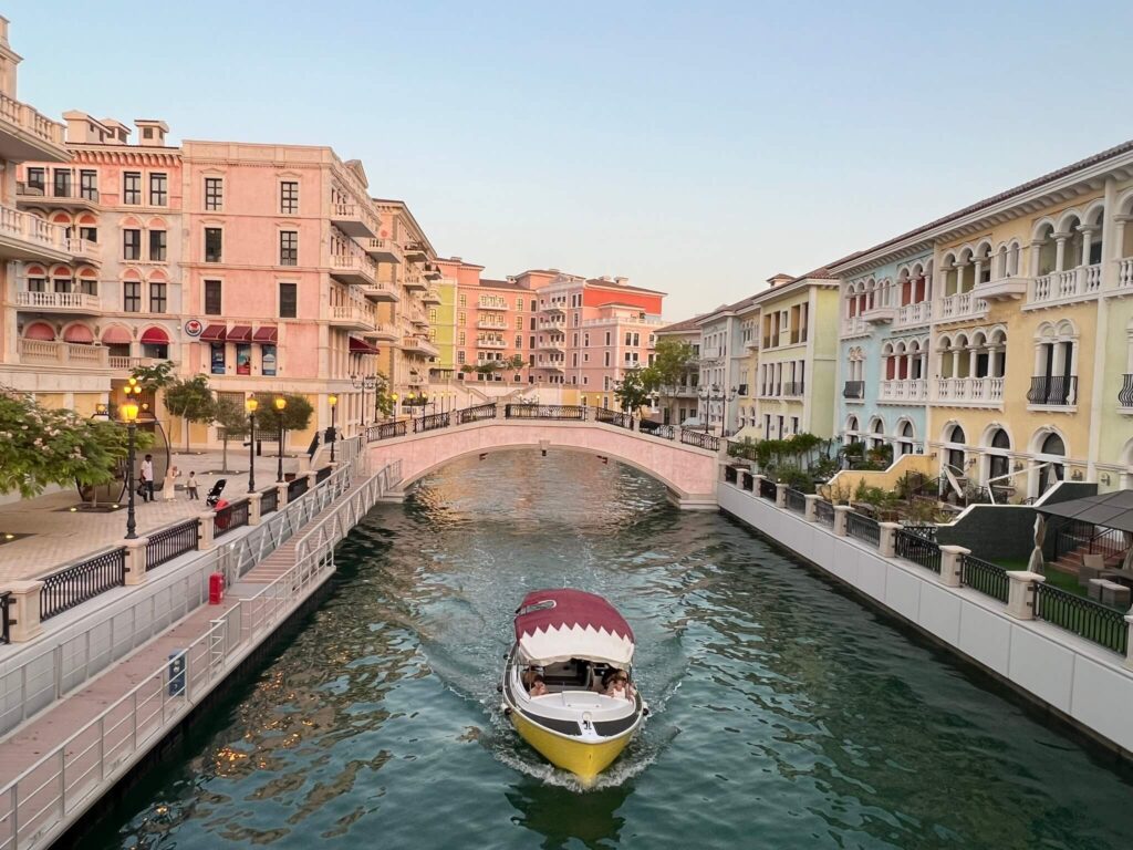 The island is divided into ten architecturally unique districts, each drawing inspiration from Mediterranean and European design traditions. Among these, Qanat Quartier stands out with its Venetian-style canals, boutique shopping, and picturesque waterfront lifestyle – making it a favorite spot for sunset views and leisurely walks. Other notable districts include Porto Arabia, with its circular marina lined with luxury yachts, and Medina Centrale, the bustling heart of retail and entertainment.