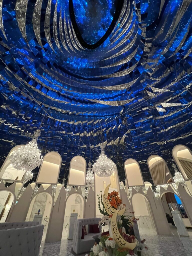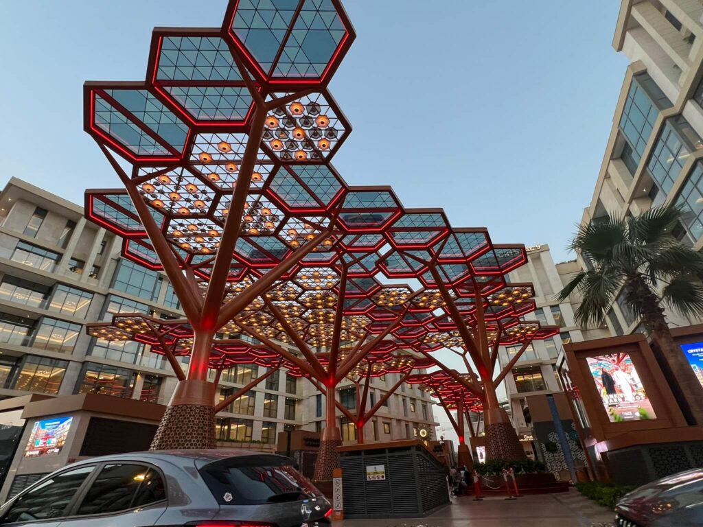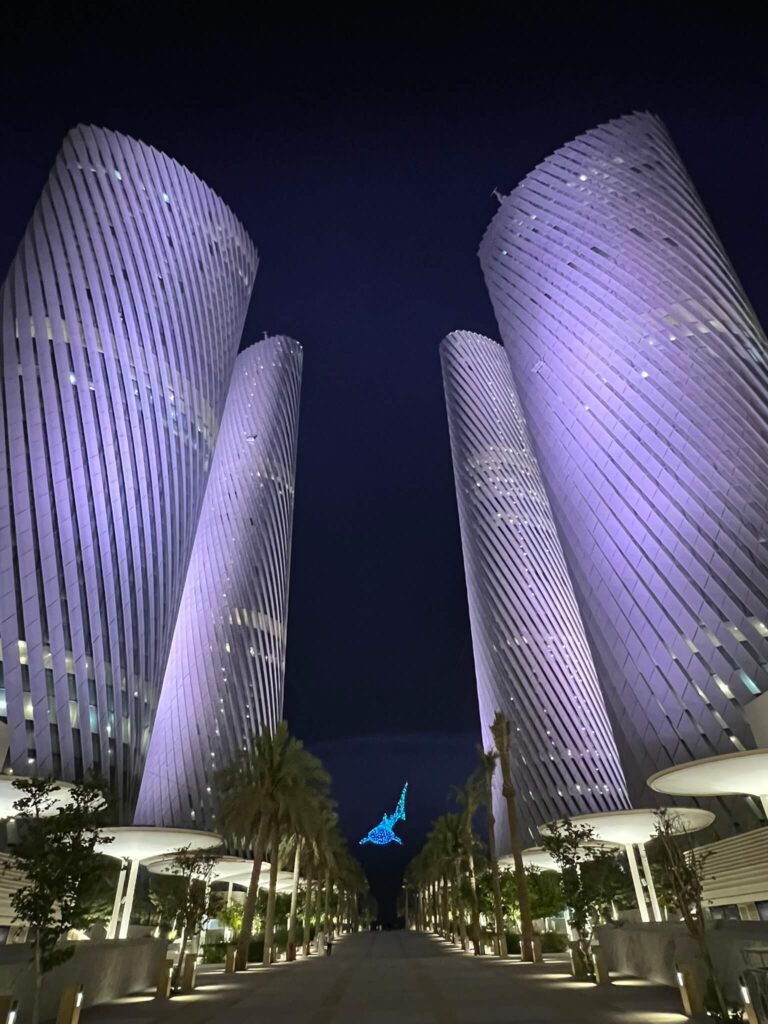 A standout attraction in Lusail is “Al Nehem,” a striking 20-ton, 30-meter-long stainless steel whale shark sculpture suspended 20 meters above Lusail Plaza between the city’s four towers. Created by designer Marco Balich, this installation pays tribute to Qatar’s endangered marine species and symbolizes the nation’s commitment to environmental preservation. The whale shark quickly gained widespread attention on social media and became an iconic emblem of the 2022 FIFA World Cup held in Qatar.