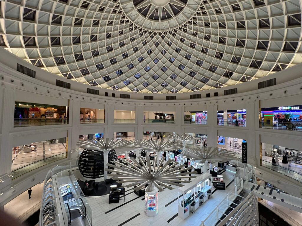 The mall is expansive, offering a wide variety of shops ranging from popular brands to luxury labels. Numerous cafés and restaurants are available, providing plenty of options for dining and relaxation.