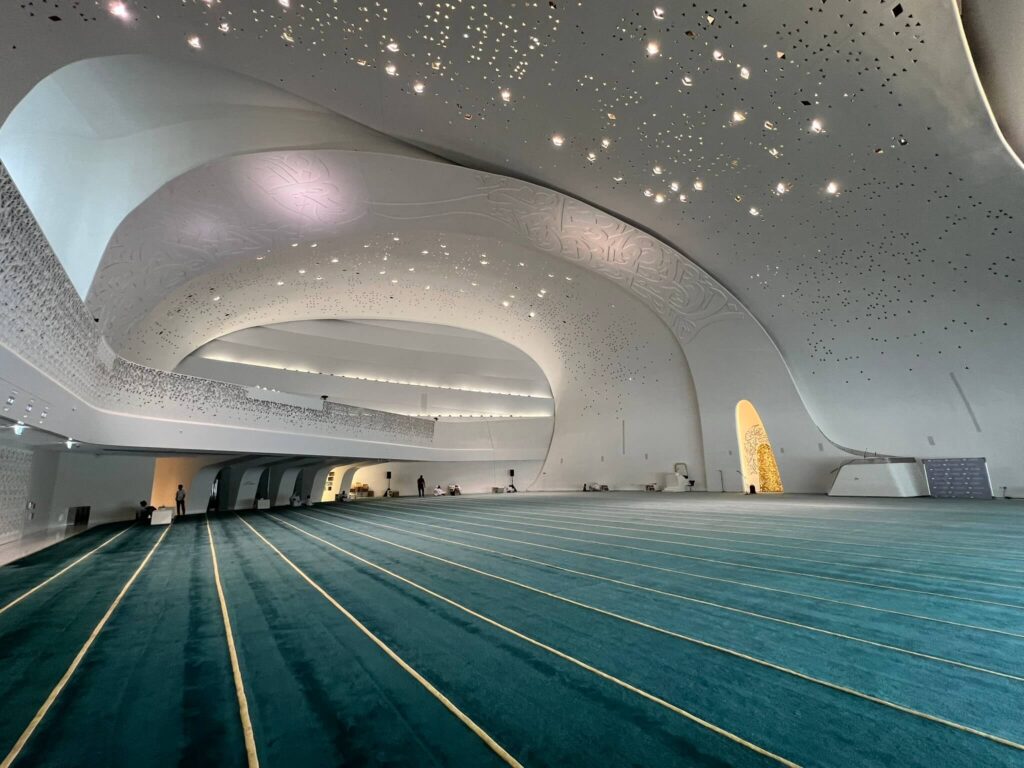Designed by Turkish architect Zeynep Fadıllıoğlu – the first female architect specializing in mosque design – the Katara Mosque showcases exquisite Persian and Turkish mosaic tiles, enamel work, inscriptions, and 24-karat gold calligraphic panels. Its elegant and intricate design creates a striking contrast with the neighboring Pigeon Towers.
