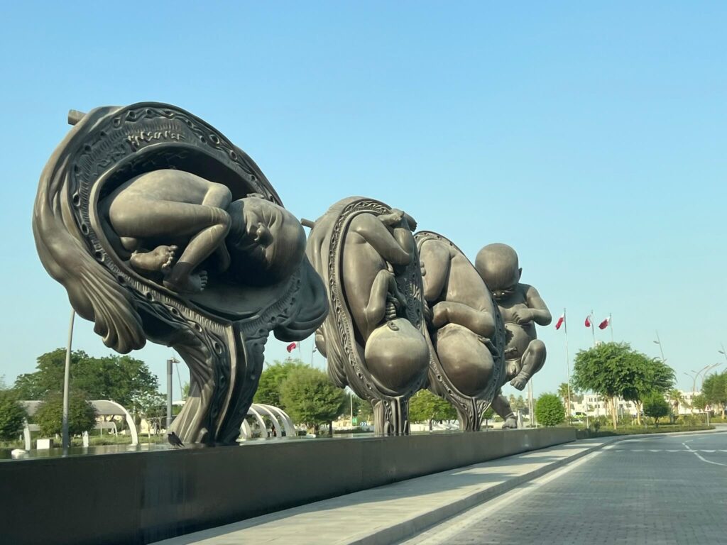 Our final stop was the Sidra Medical and Research Centre, home to Damien Hirst’s “The Miraculous Journey” – a remarkable series of 14 bronze sculptures illustrating the stages of fetal development, culminating in a towering 46-foot statue of a newborn. The hospital itself is dedicated to women’s and children’s healthcare.