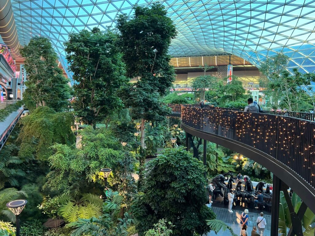 Nestled at the heart of Hamad International Airport, The Orchard spans 6,000 square meters and features over 65 of the airport’s 180 renowned retail and dining outlets, all set within a lush, green environment. This garden offers a tranquil oasis where visitors can walk, relax on benches, or even sit on the lawns.